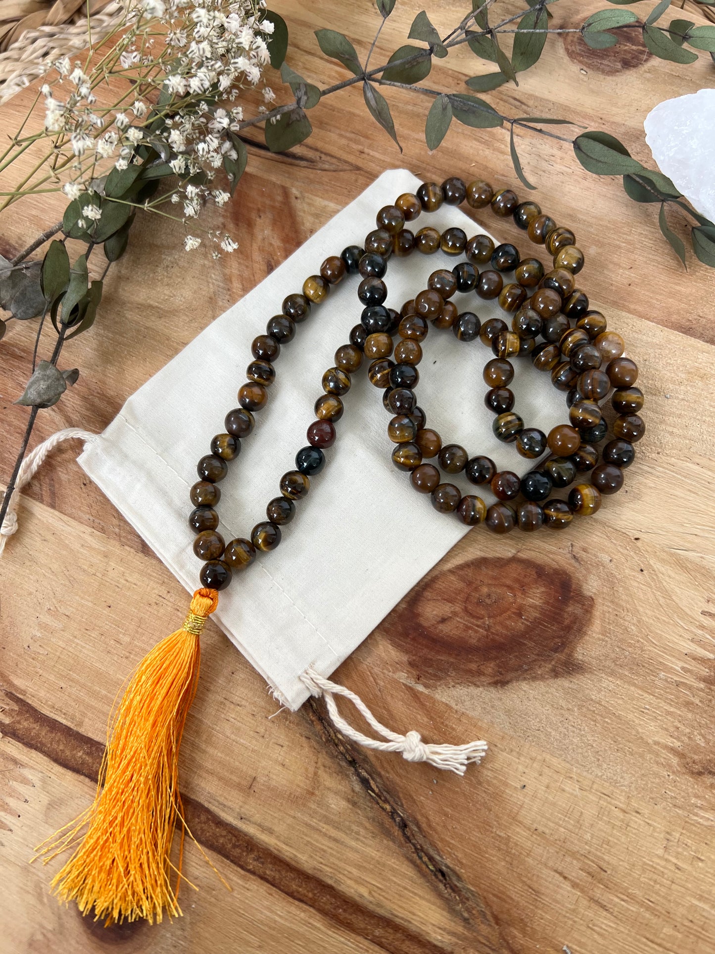 Goldblick ist deine Mala aus echtem Tigerauge – ein stiller Begleiter für Zeiten, in denen du Klarheit brauchst. Für Entscheidungen, für Anfänge, für das Vertrauen in deinen Weg.