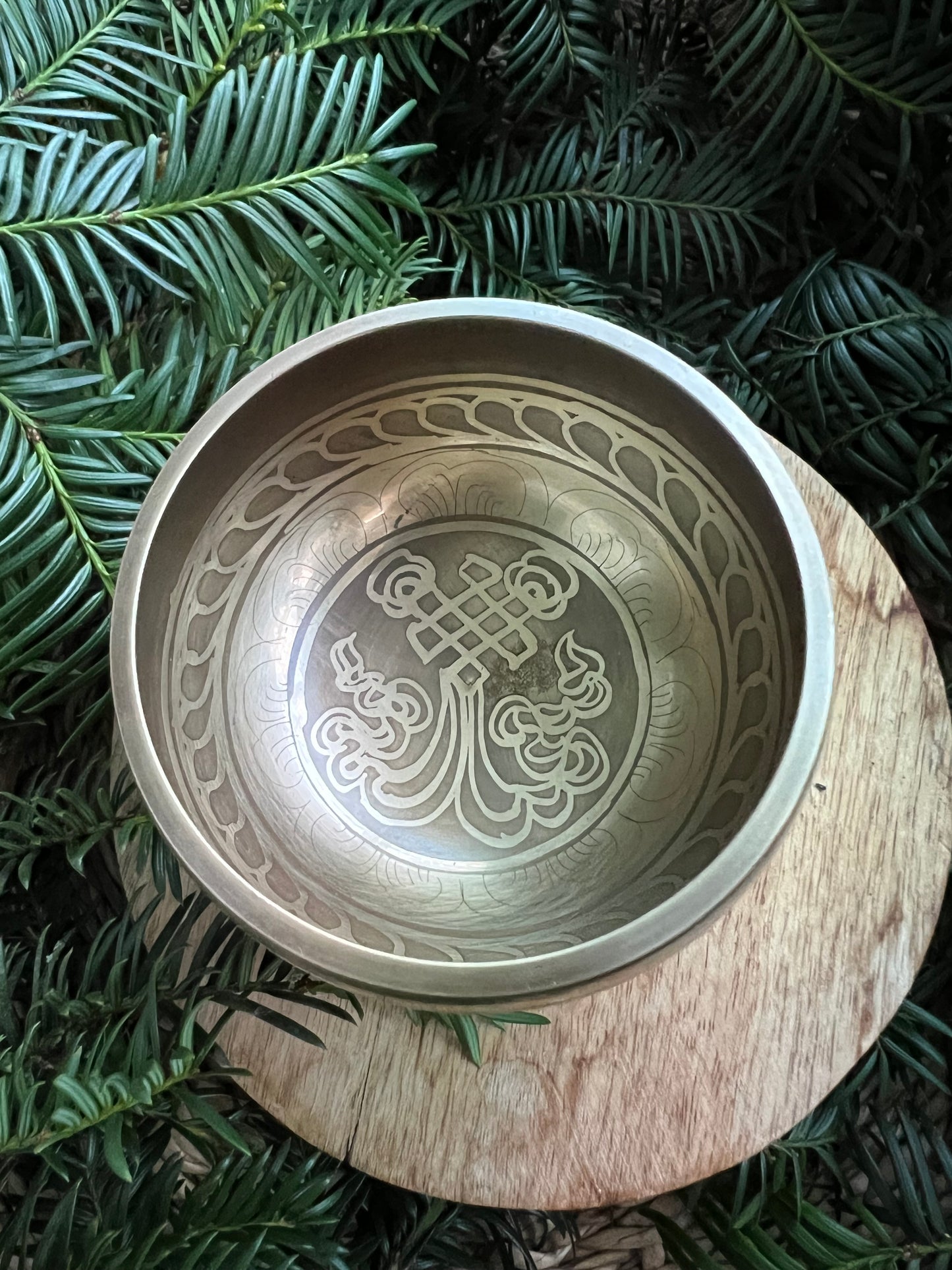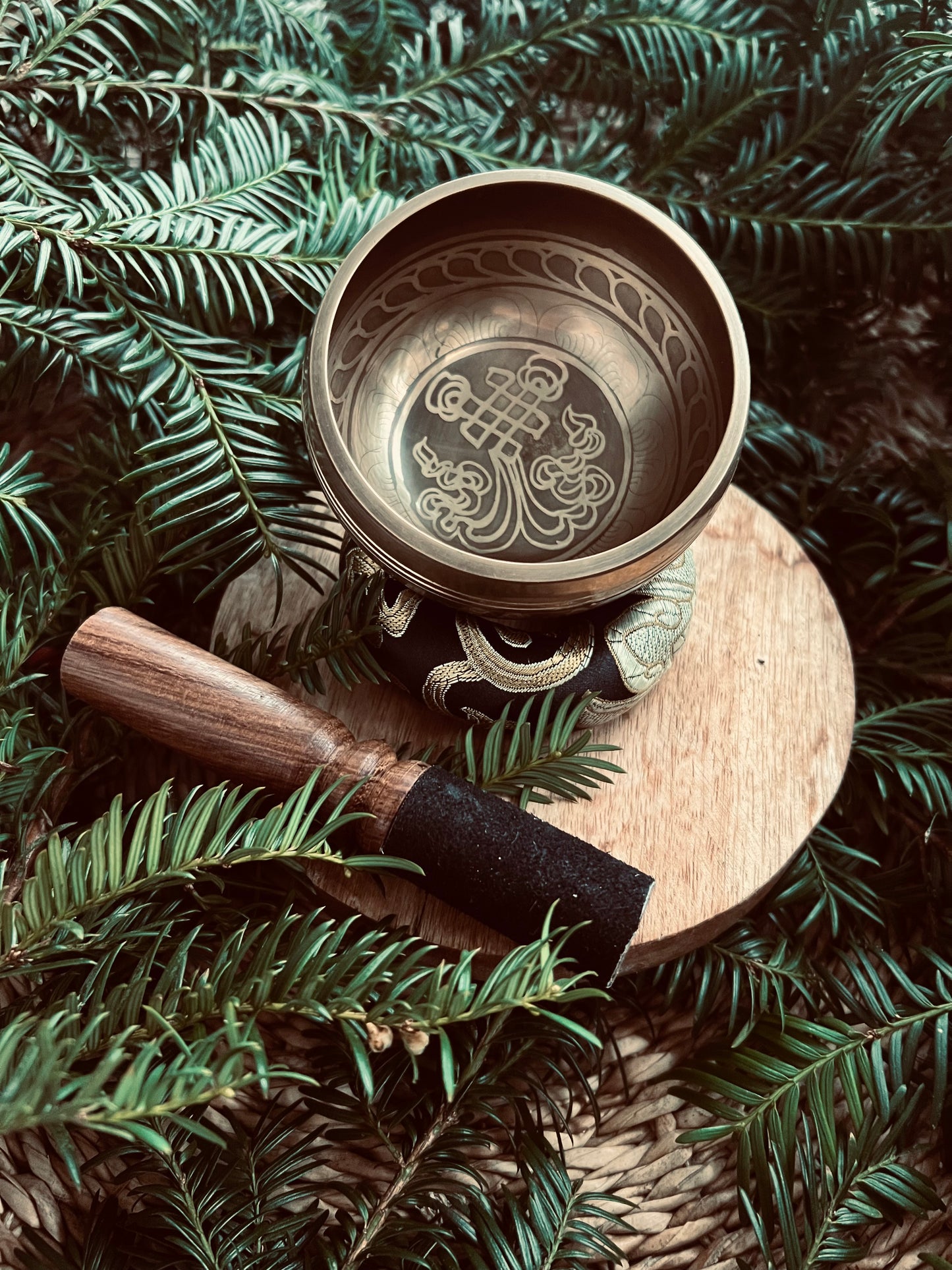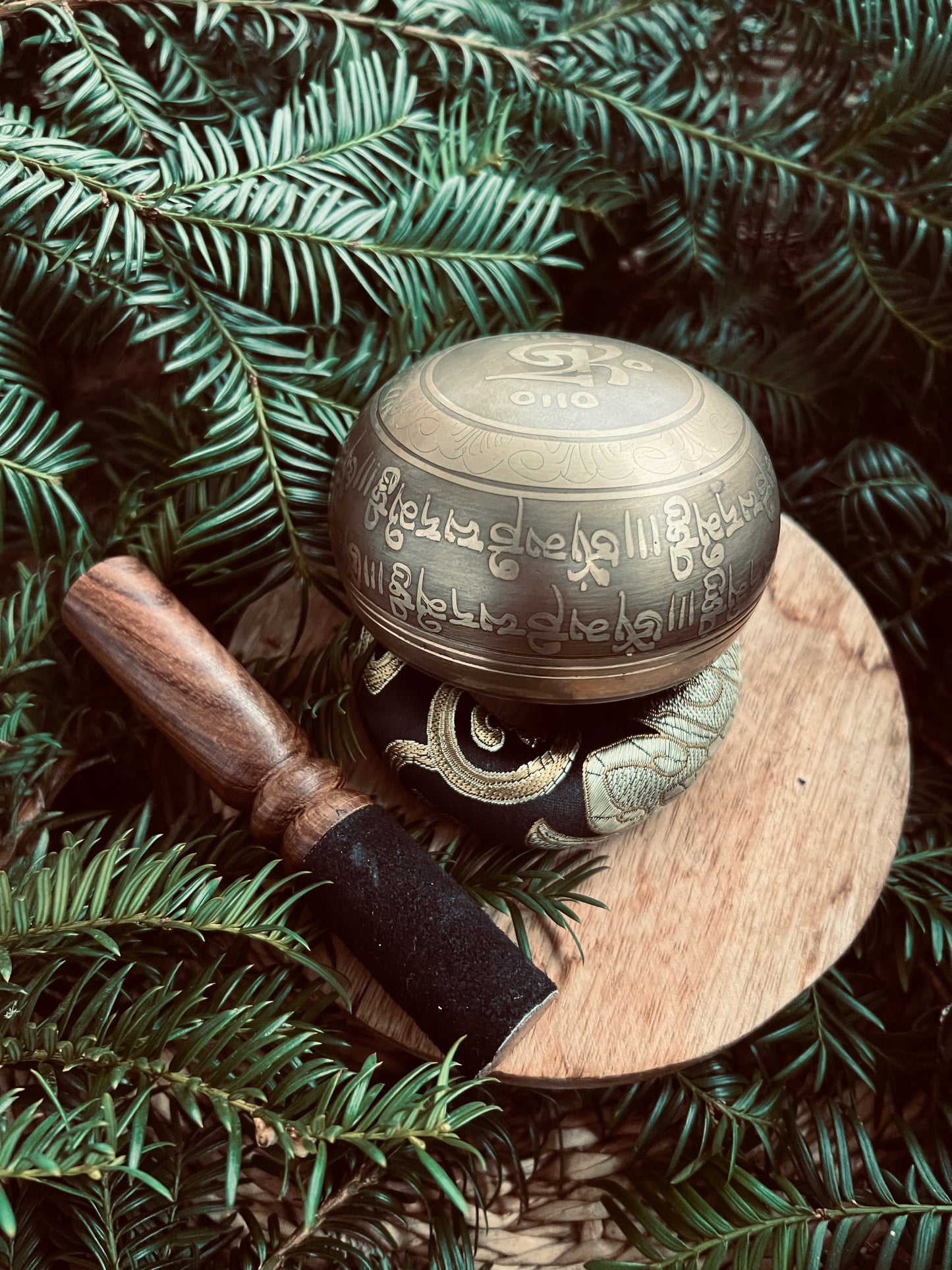 Setze dich in eine bequeme Position, halte oder platziere die Schale sanft auf der Hand oder Unterlage und bringe sie mit einem Klöppel durch Anschlagen oder Reiben zum Schwingen. Spüre nach – der Klang darf sich in dir entfalten.