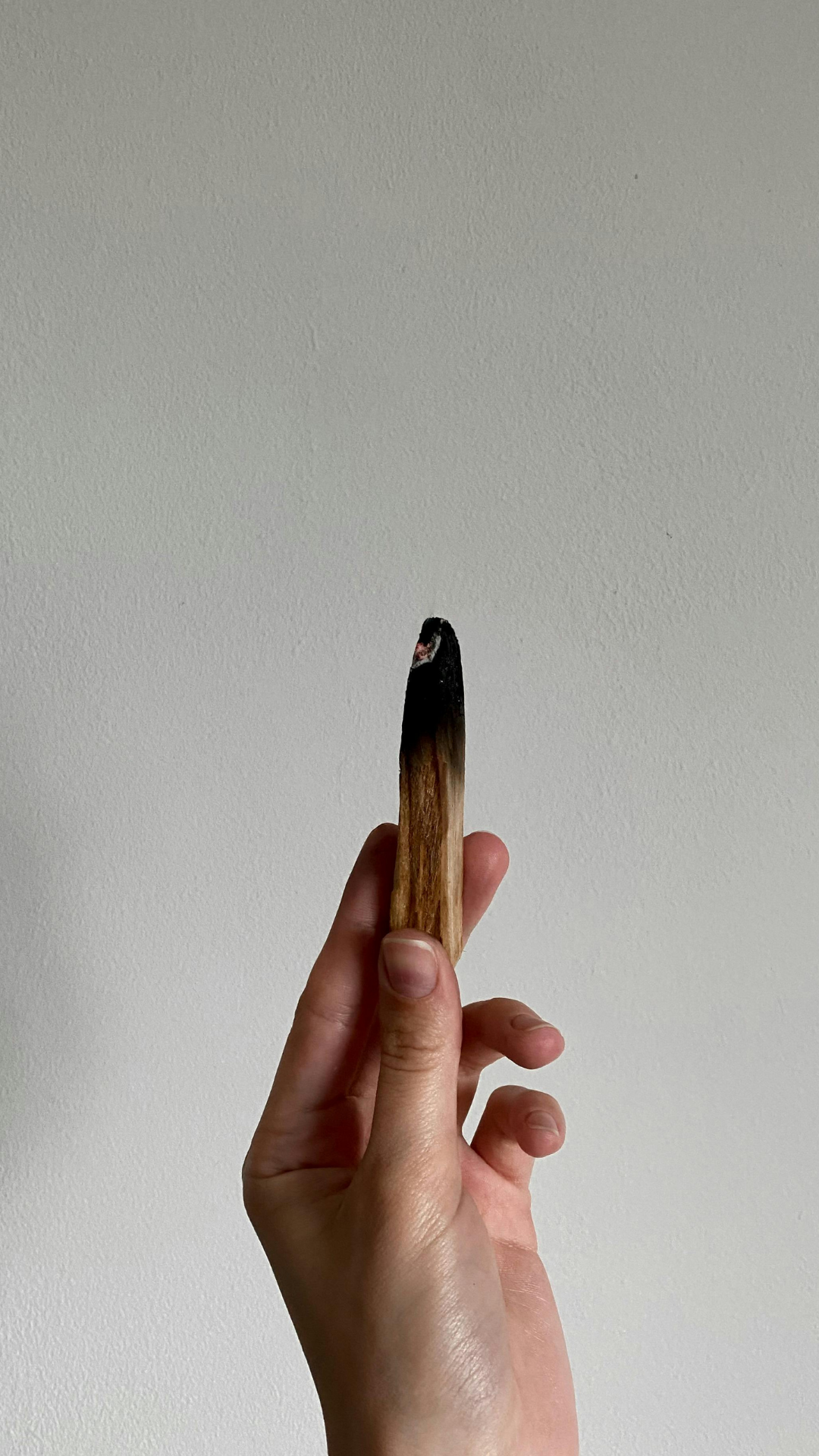 Zünde das Holz an einem Ende an, lass es kurz brennen und puste dann die Flamme aus.